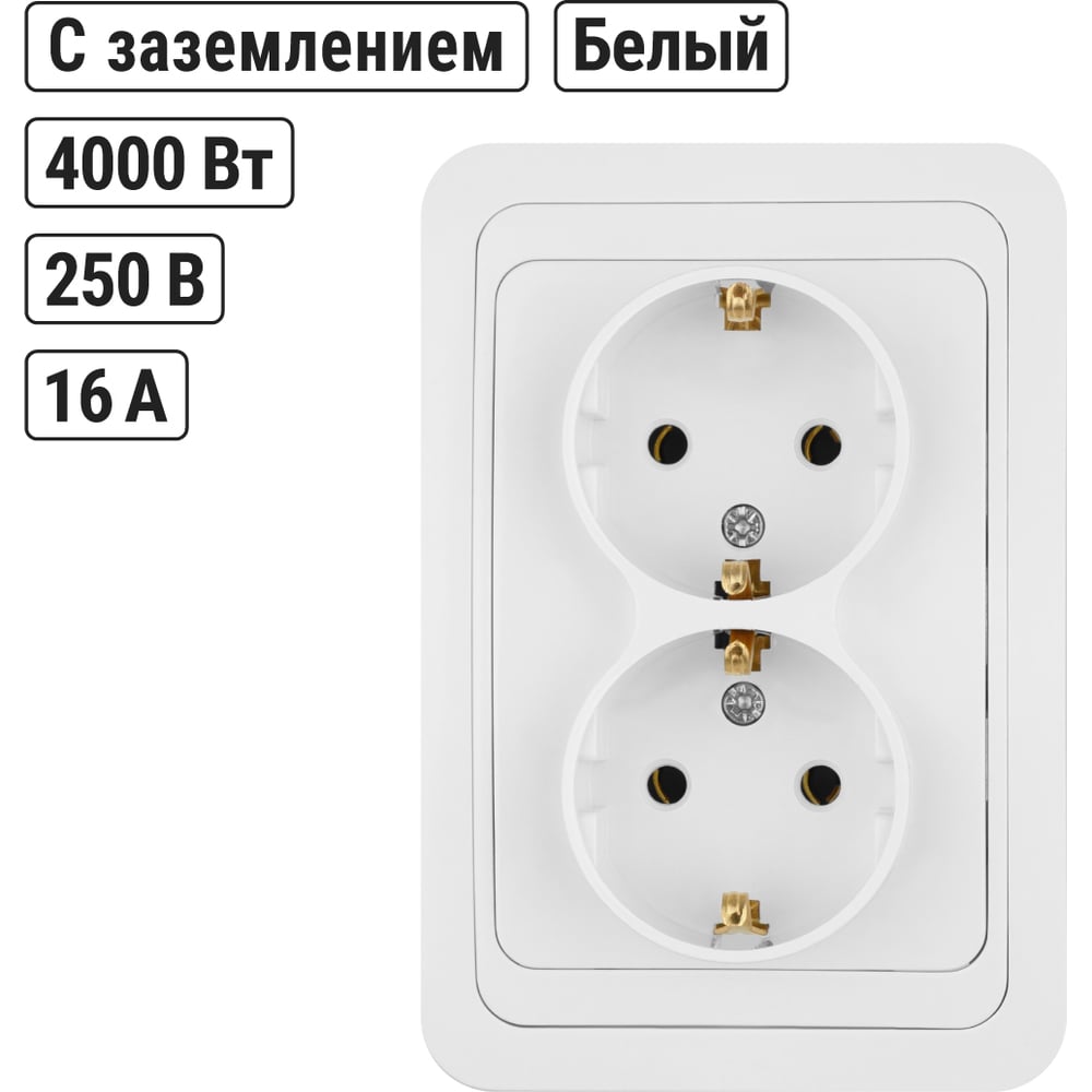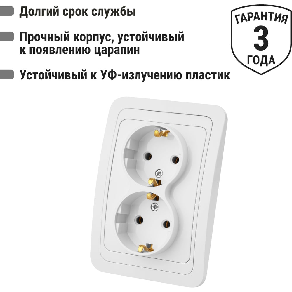Двойная розетка, белая 2П+З 16А TDM ELECTRIC Валдай SQ1804-0010