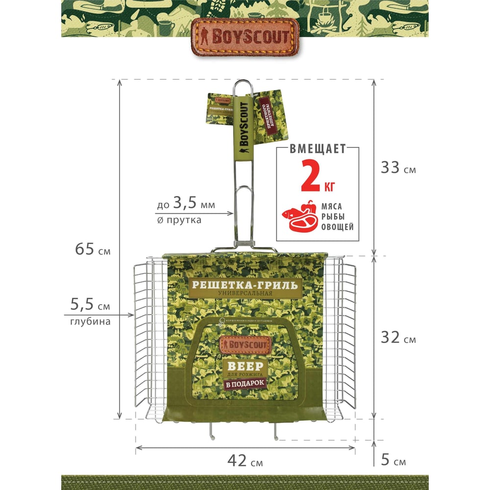 Универсальная большая решетка-гриль BOYSCOUT + веер 61304