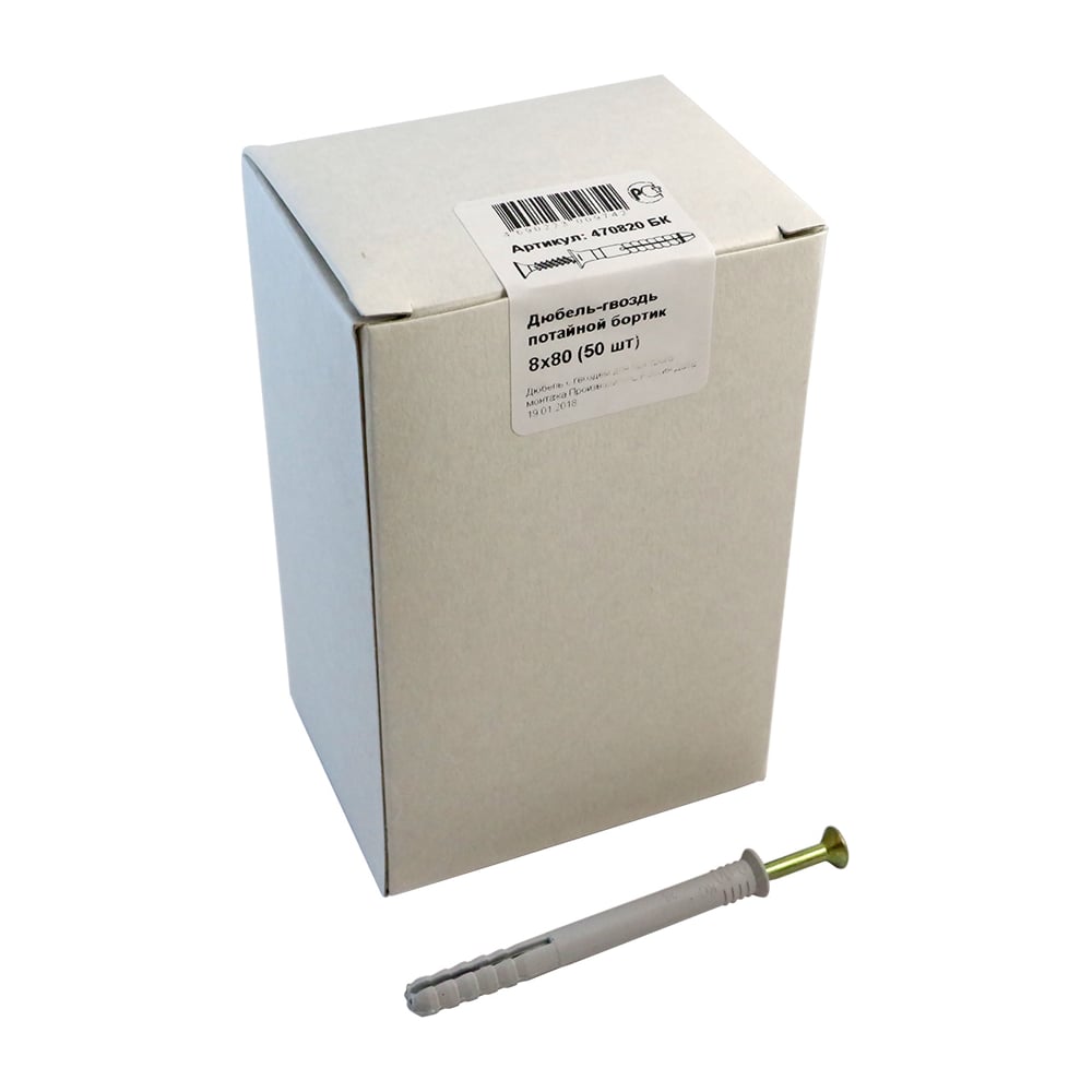 Дюбель-гвоздь с потайным бортиком крепежная техника 8х80, 50 шт 470820 БК