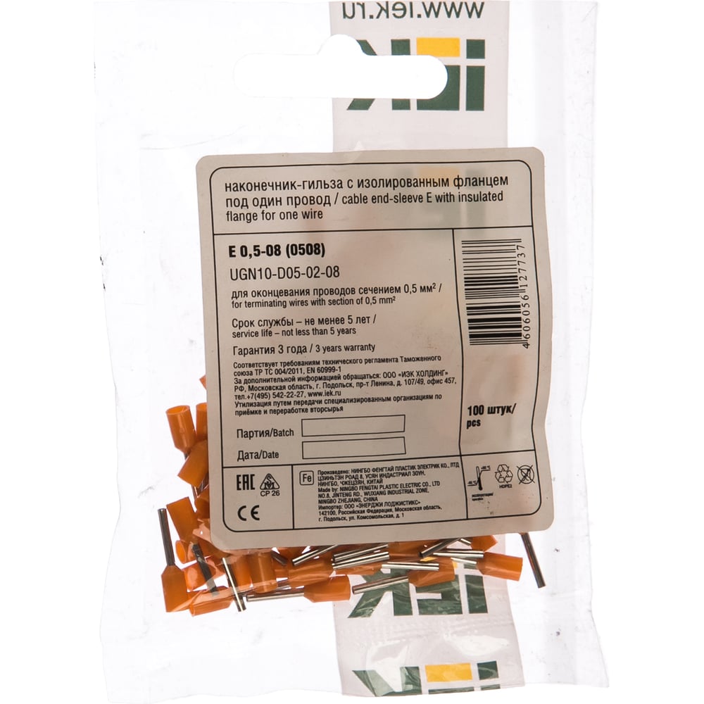 Наконечник-гильза с изолированным фланцем IEK Е0508 уп.100шт ИЭК UGN10-D05-02-08