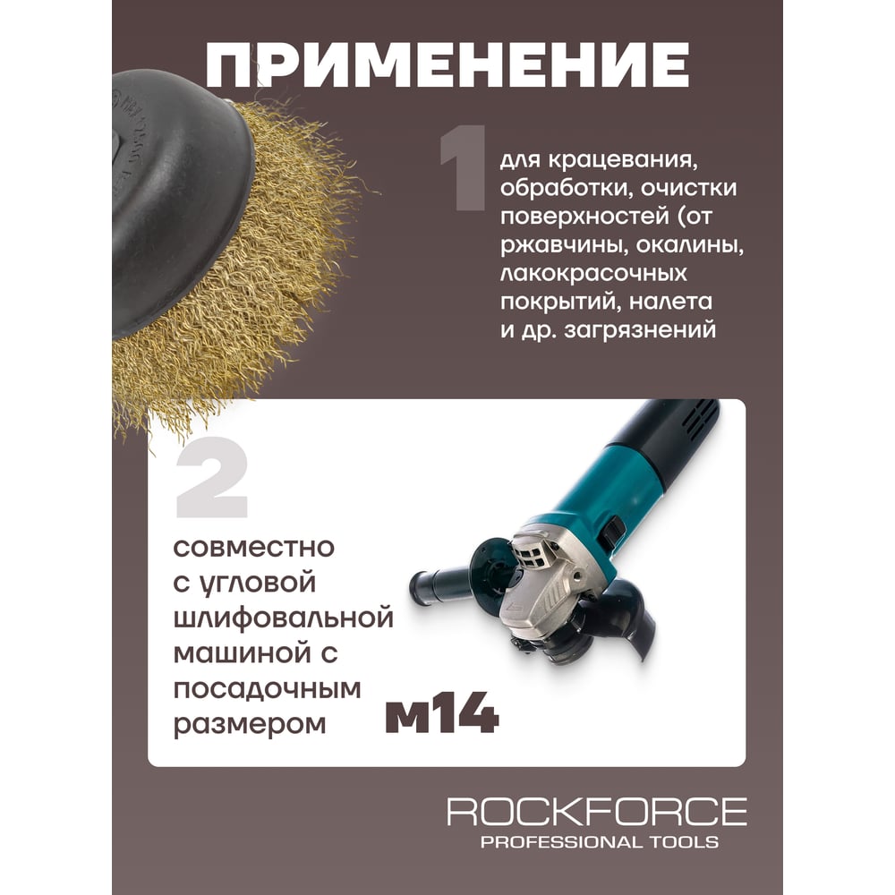 Кордщетка чашеобразная латунная для УШМ, 100 мм, в блистере ROCKFORCE RF-BWC004(29658)