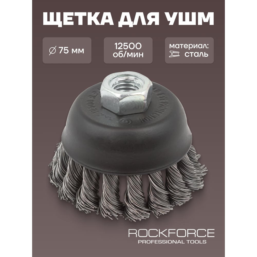 Кордщетка чашеобразная стальная витая для УШМ 75 мм, в блистере ROCKFORCE RF-BWC103(29074)