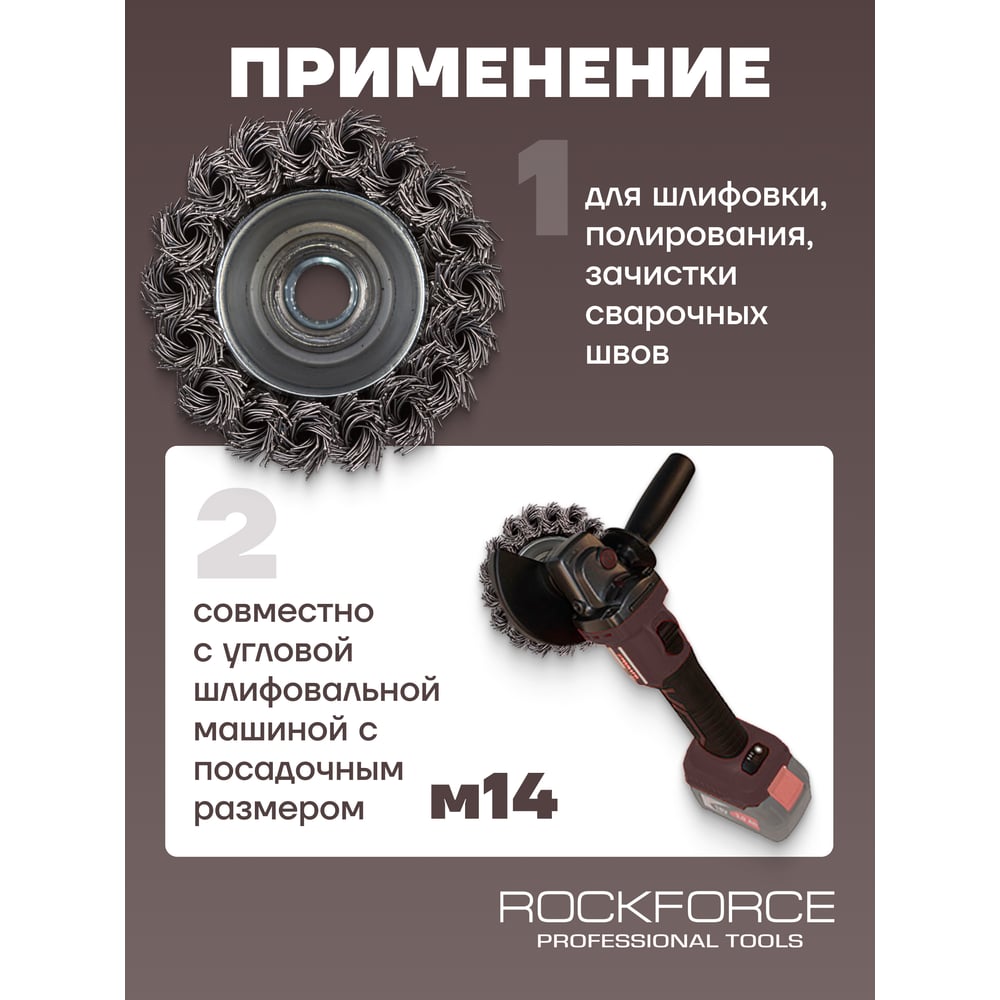 Стальная витая чашеобразная кордщетка для ушм Rockforce RF-BWC103(29074)