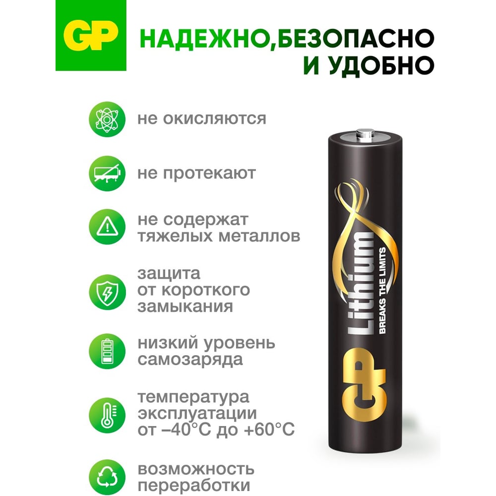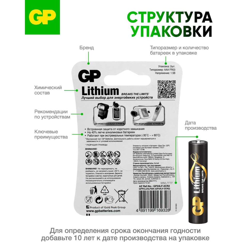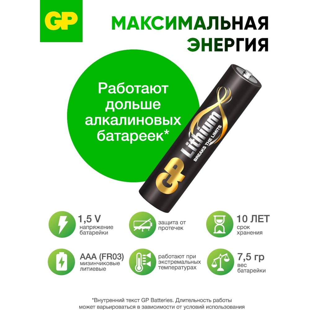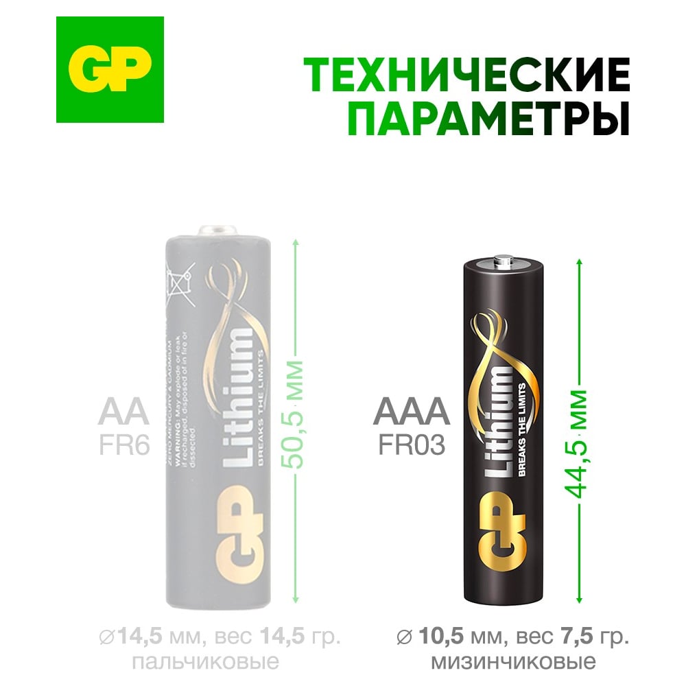 Литиевые батарейки GP 24LF AAA - 2 шт. в блистере. 24LF-2CR2 15924660