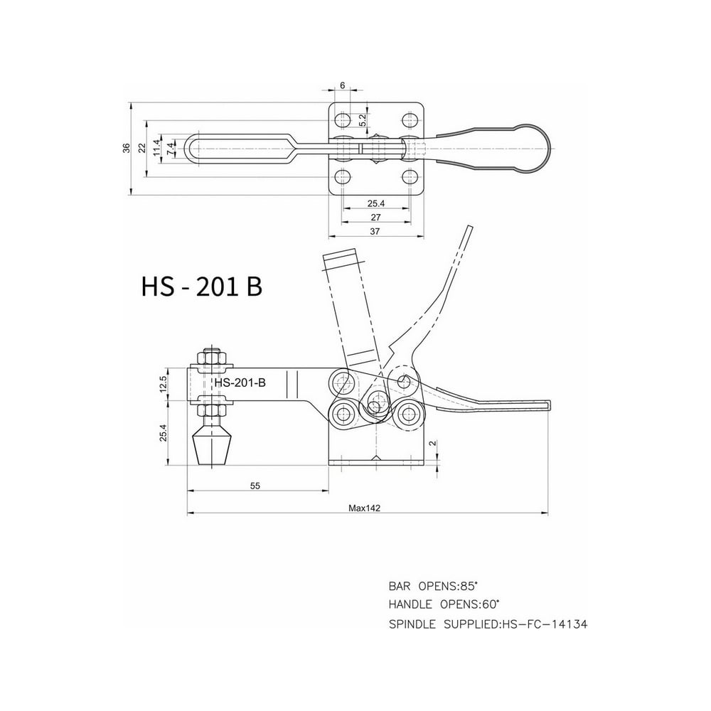 Зажим с горизонтальной рукоятью HS CLAMP HS-201-B