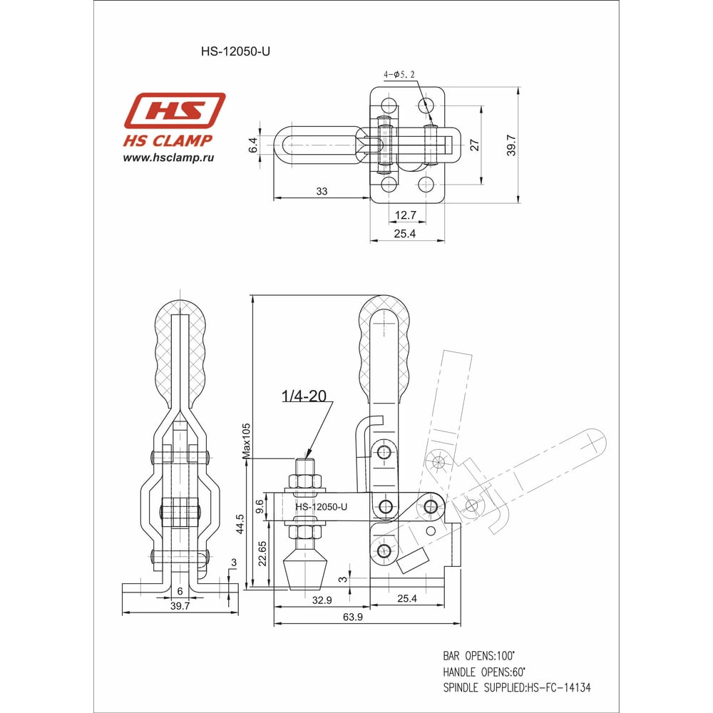 Зажим с вертикальной рукоятью HS CLAMP HS-12050-U