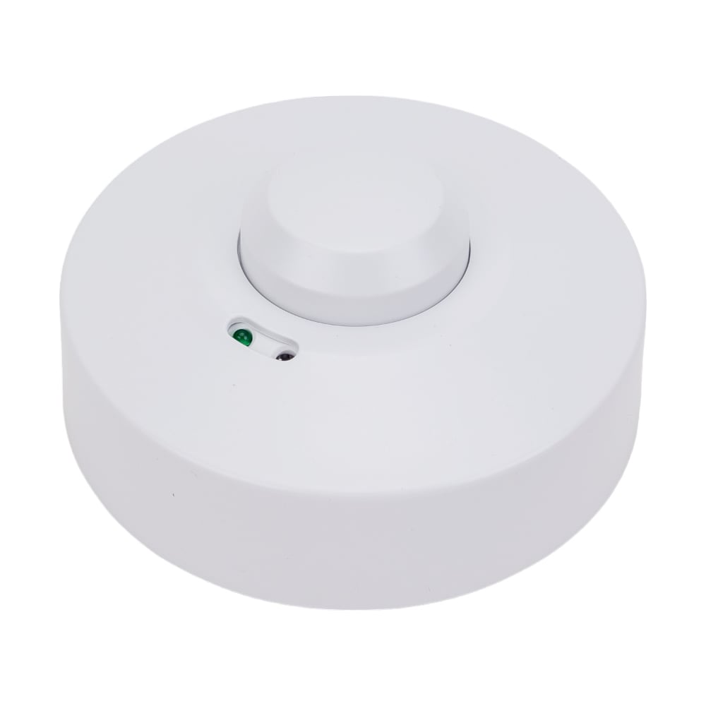 Габариты без упаковки 96х96х43 мм Тип установки настенно-потолочный Вес нетто 0.176 кг Цвет корпуса белый ГОСТ нет Напряжение 230 В Модельный ряд ДДМ Монтаж накладной Уличный нет Светодиодный индикатор да Таймер да Элементы питания сеть Рабочая температура от -20 до +40 °С Max угол обзора 360 град Степень защиты корпуса 33 IP Wi-Fi нет Max мощность нагрузки 1200 Вт Фотореле нет Звуковой сигнал нет Возможность угловой установки нет Задержка времени выключения 10 сек-12 мин Освещенность датчика 3 - 2000 Люкс Дальность действия 8 м Рекомендуемая высота установки 1.5 м Max задержка выключения/отключения 12 мин Подключение трехпроводной Принцип действия микроволновой Виды режимов LUX/TIME/SENS