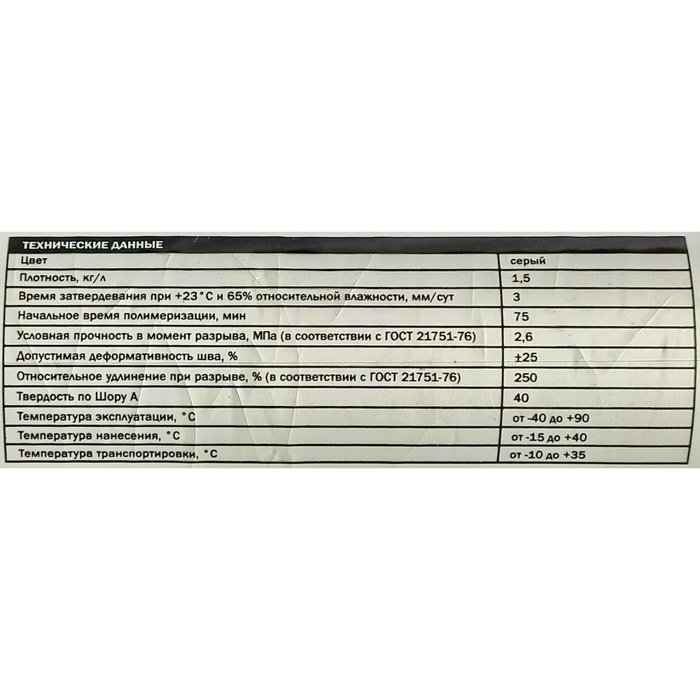 | Тип герметика | полиуретановый |