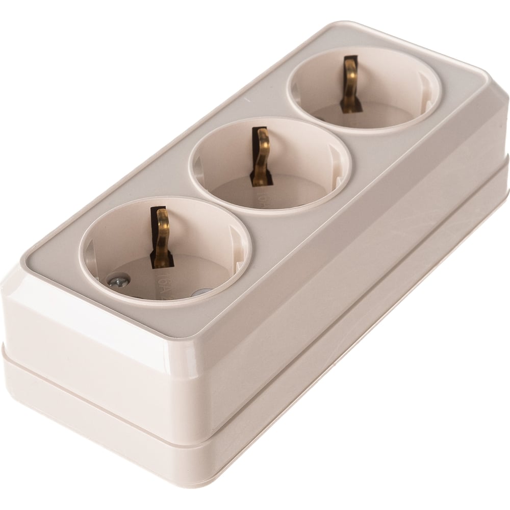 Розетка Intro Quadro с заземлением трехместная 3x2P+E, 16А-250В, IP20, открытая установка, слоновая кость, Б0053821