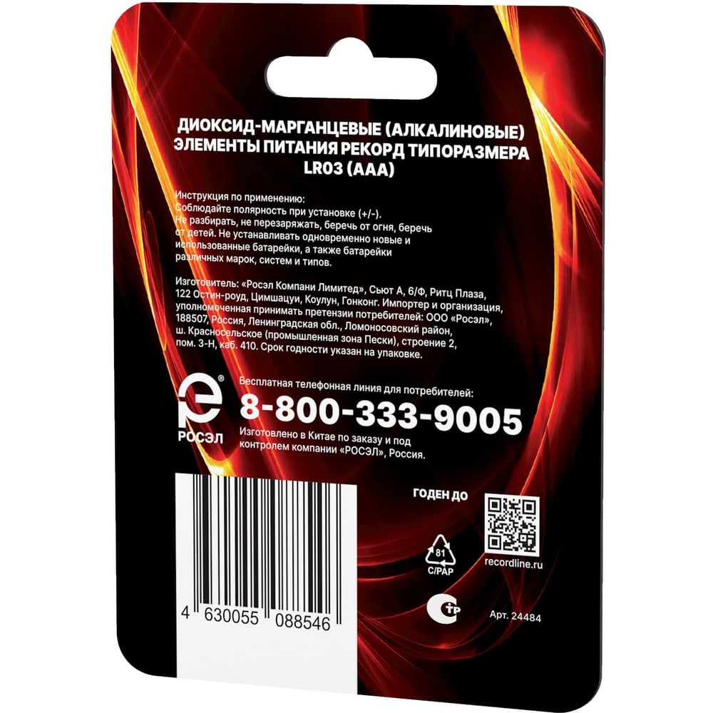 Батарейки РЕКОРД (1748) мизинчиковые ААА LR03 PB10 (упаковка 10 шт.) 24484