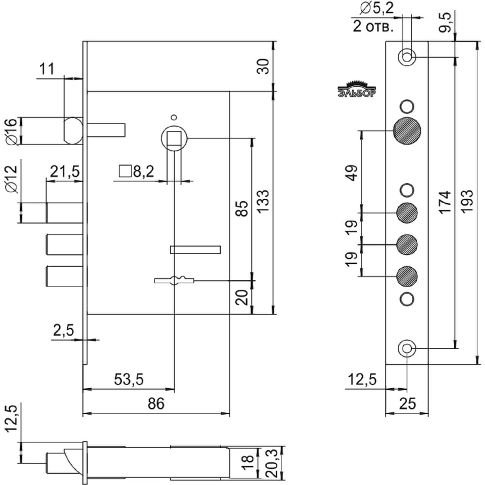 | Удаление ключевого отверстия (Backset) | 53.5 мм |