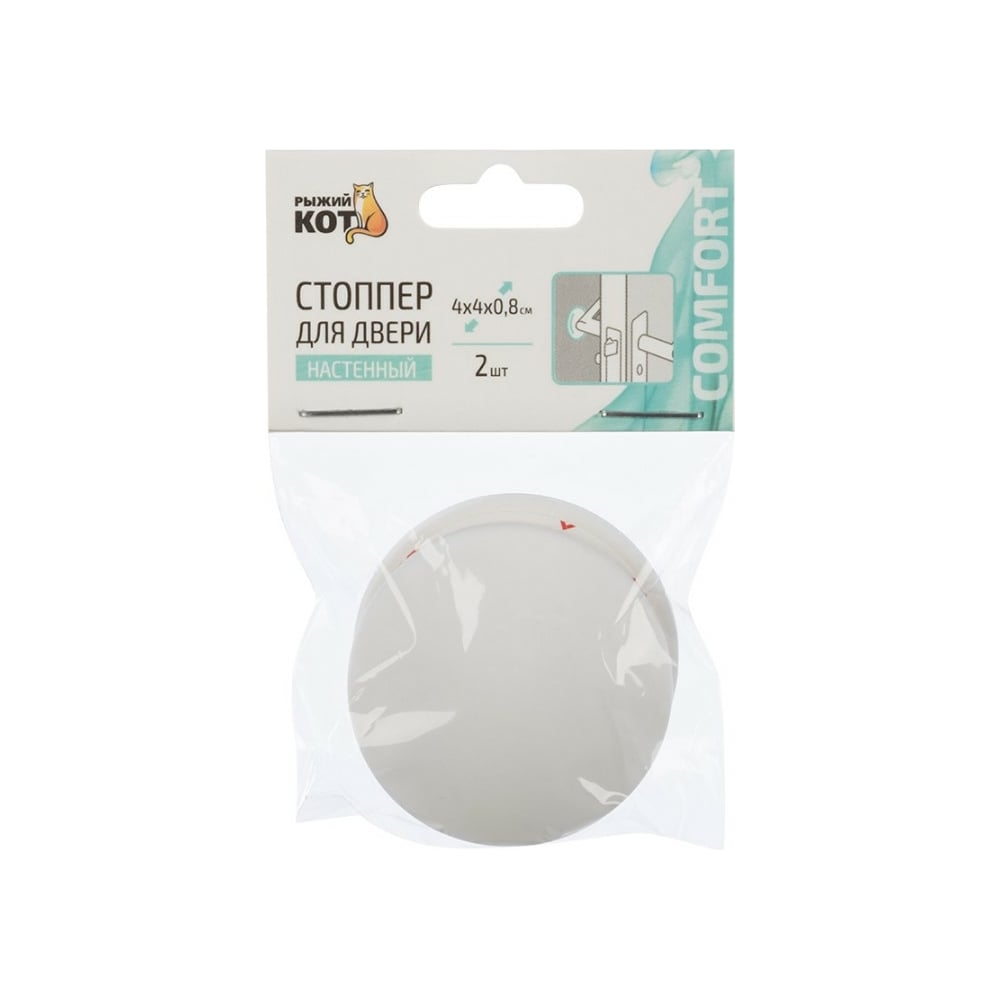 Стоппер для двери Рыжий кот настенный, круглый, самоклеящийся, 2 шт. в наборе 103683
