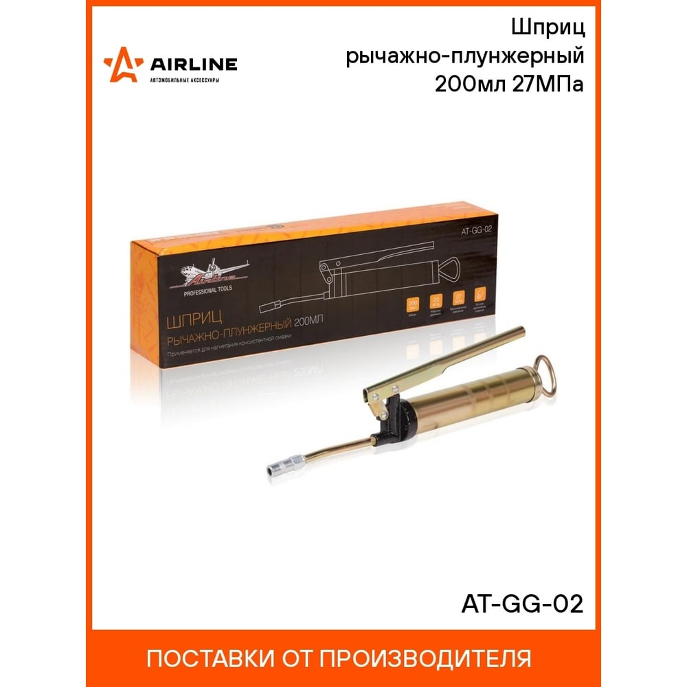 Рычажно-плунжерный шприц AIRLINE 200 мл, 27 МПа AT-GG-02