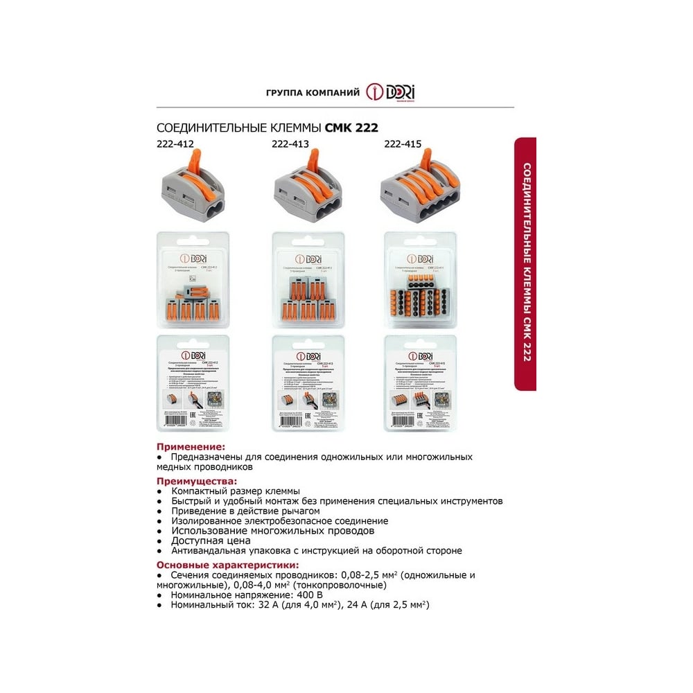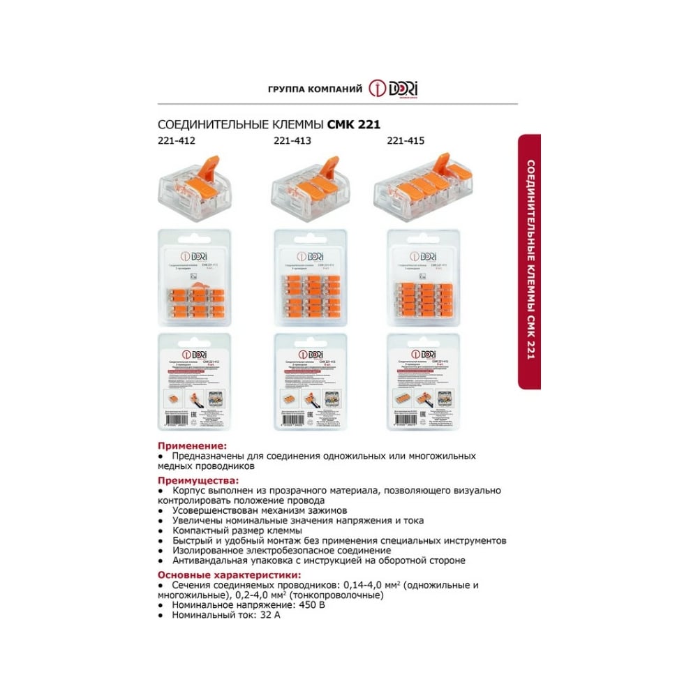 | Max сечение провода | 4 мм² |