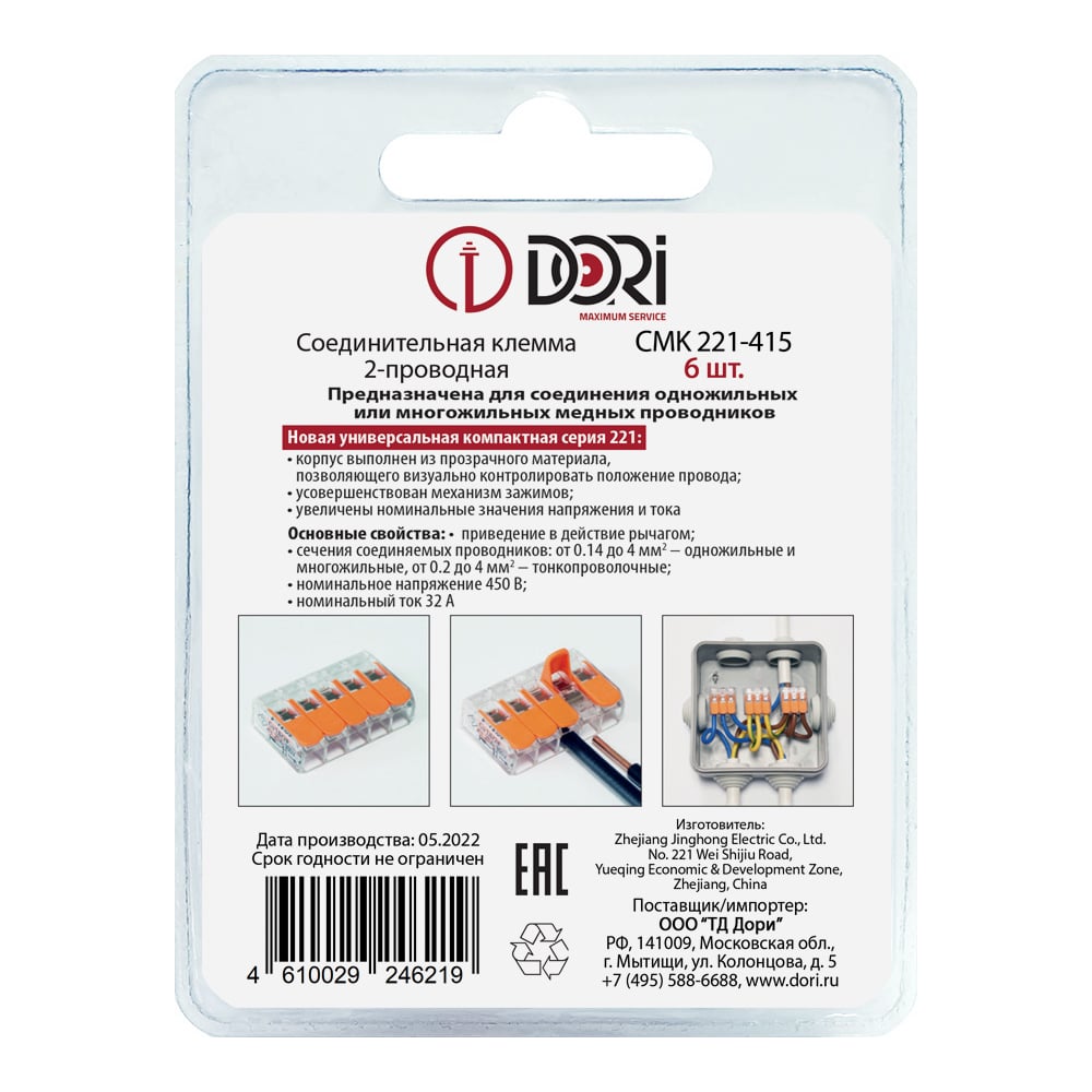 | Количество зажимаемых проводов | 5 шт |