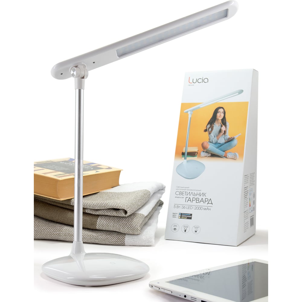 Светодиодный настольный светильник Лючия L360 "Гарвард" белый аккумулятор 5W, сенсорное управление, 4606400512226