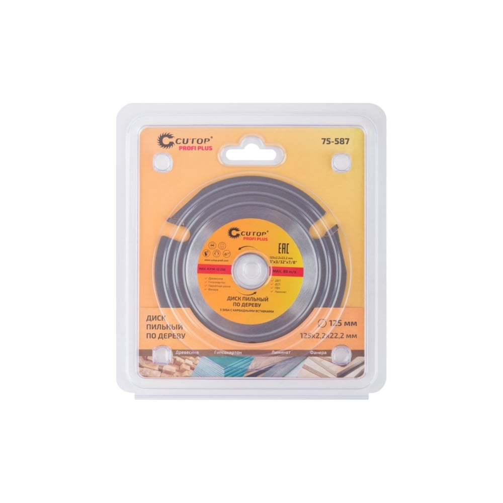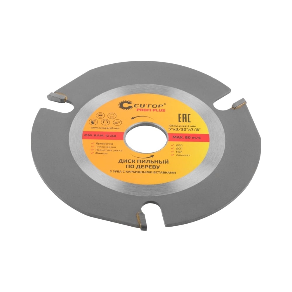 Диск пильный по дереву для УШМ Profi Plus (125x2.2x22.2 мм; 3 зуба с карбидными вставками) CUTOP 75-587
