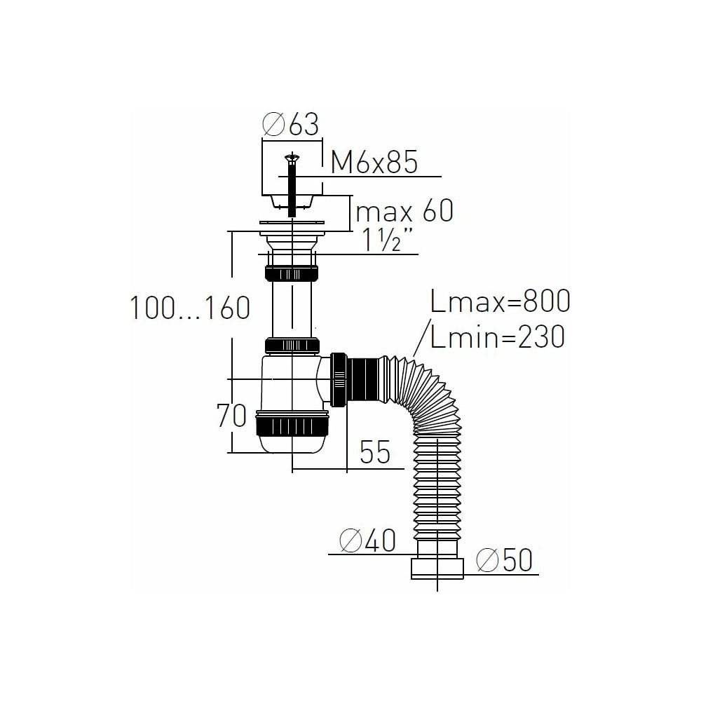 | Диаметр выпуска (отверстия для слива) | 1 1/2 дюйма |
