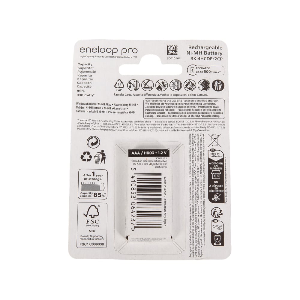 Аккумуляторы Panasonic eneloop pro BK-4HCDE/2BE 930mAh AAA R03 BL2 7706