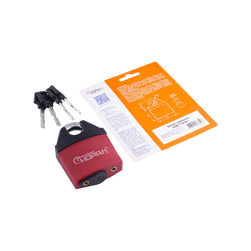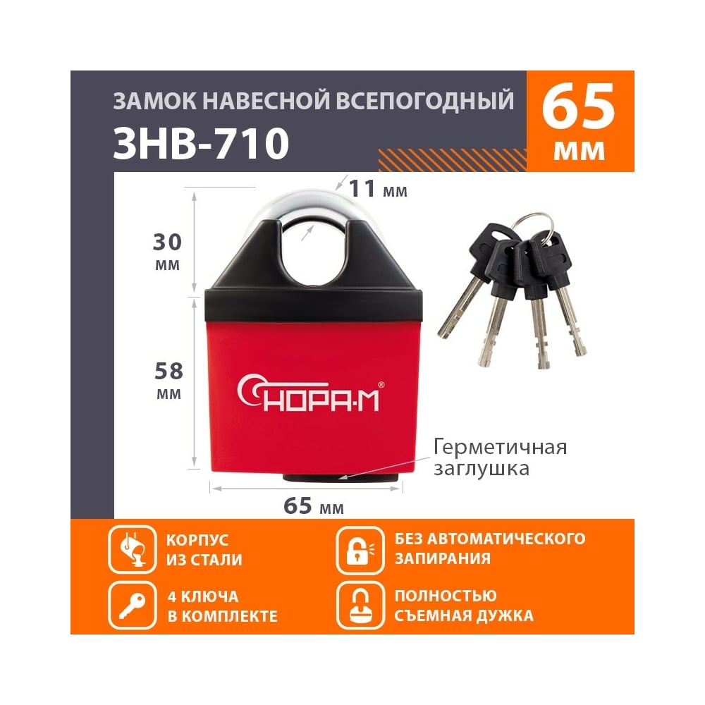 Навесной всепогодный замок НОРА-М ЗНВ-710-65 полузакрытый, 65 мм, 4 ключа 18827