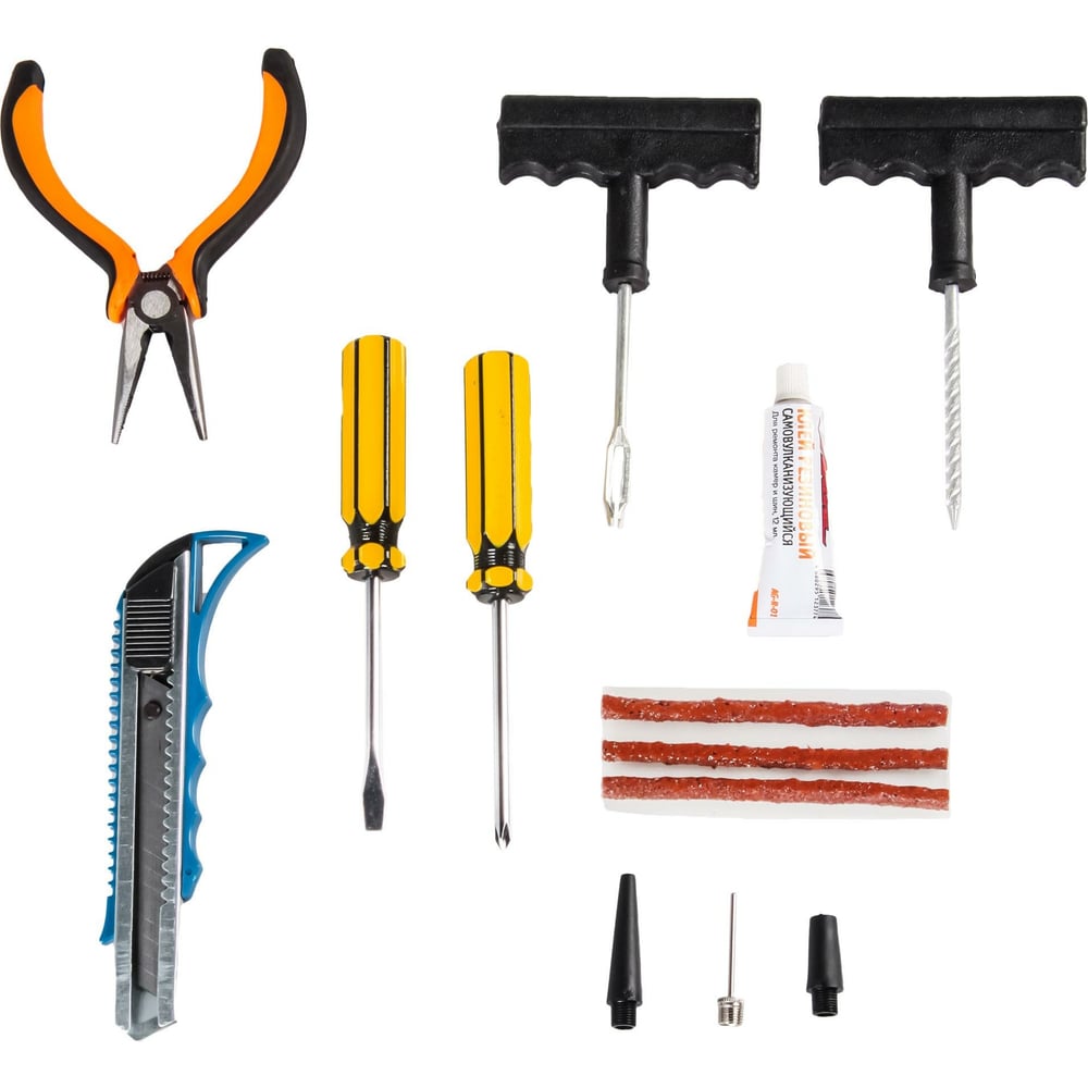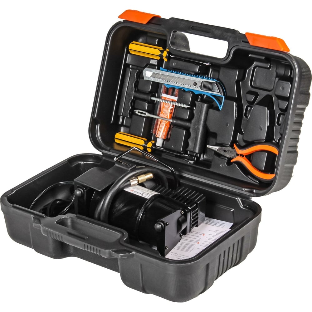 Компрессор AIRLINE TORNADO S с комплектом инструментов, в кейсе, 2 отвертки, ремкомплект для бескамерных шин, нож, плоcкогубцы CA-020-01N