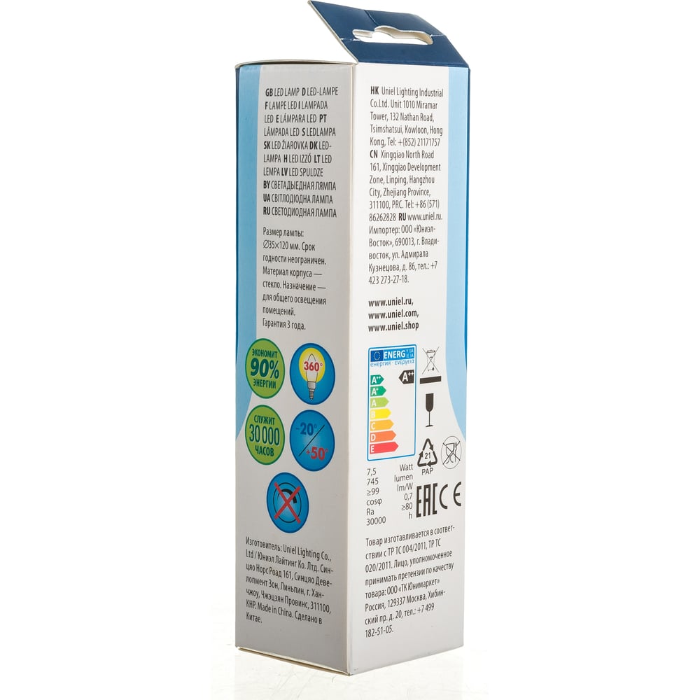 Светодиодная лампа Uniel LED-CW35-7,5W/NW/E14/CL GLA01TR UL-00003296