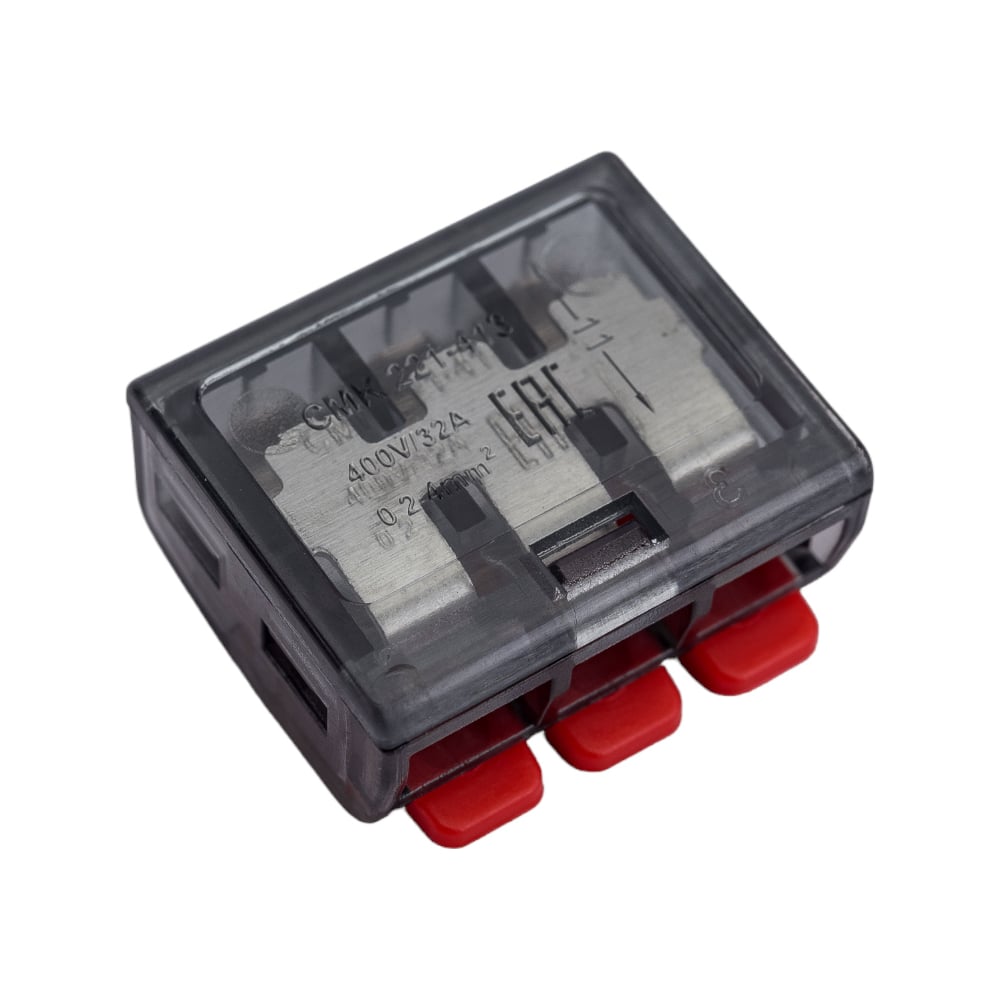 Клемма EKF СМК 221-413, 3 отверстия, 0.2-4.0мм2, 100шт, PROxima SQ plc-smk-221-413
