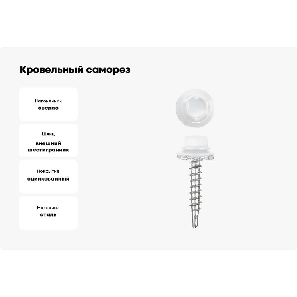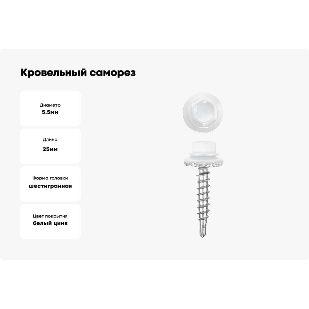 Кровельные саморезы ВИРТУОЗ 5,5х25 мм, RAL 9003, ярко-белый, 25 шт. 26682