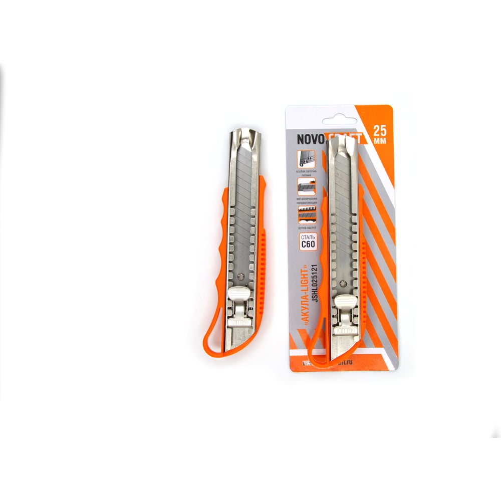 Нож NOVOCRAFT АКУЛА-light 25 мм, PE корпус, 12/144, блистер JSHL025121