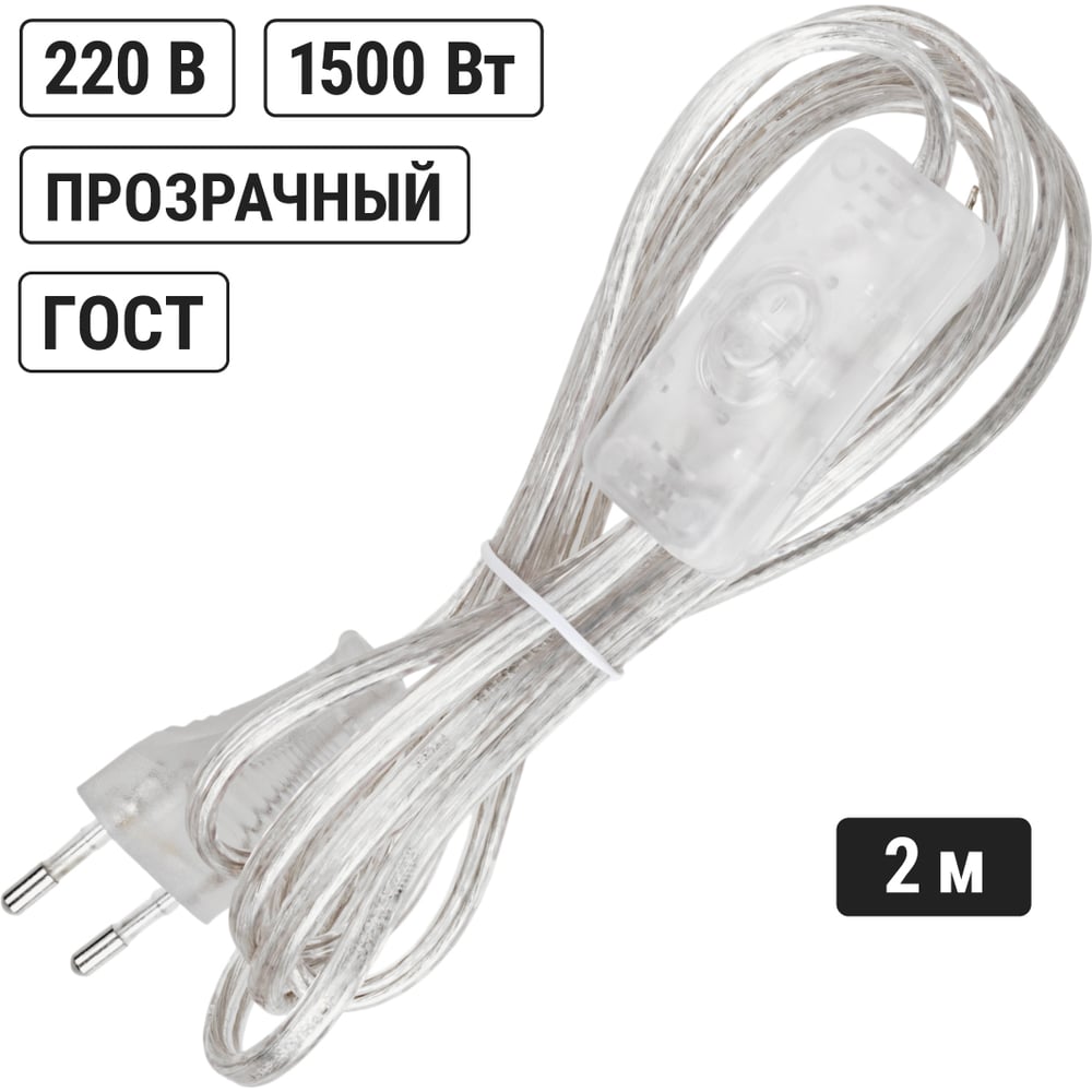 Шнур с выключателем и плоской вилкой TDM ELECTRIC ШУ01В ШВВП 2x0,75мм2 2м. прозрачный SQ1305-0004