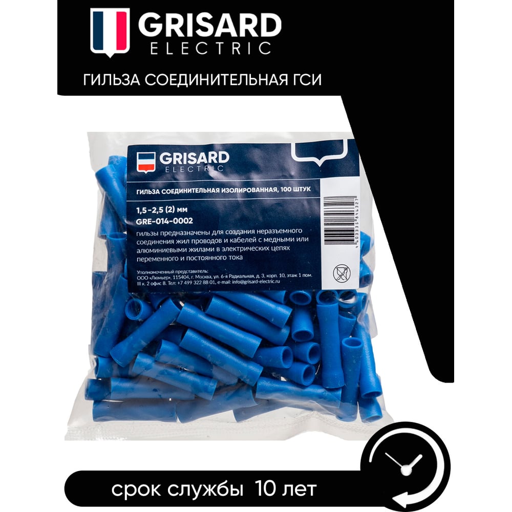 Соединительная изолированная гильза Grisard Electric 1,5-2,5 (BV2) (100шт/упаковка) GRE-014-0002