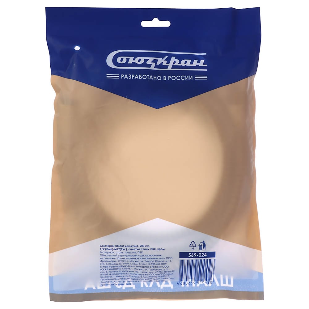 Шланг для душа СоюзКран 200 см., 1/2-М22, пластик 569-024
