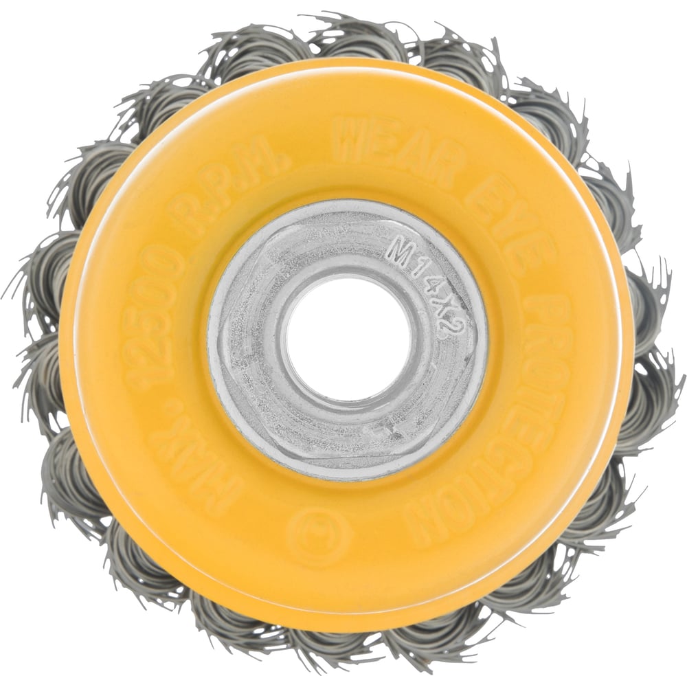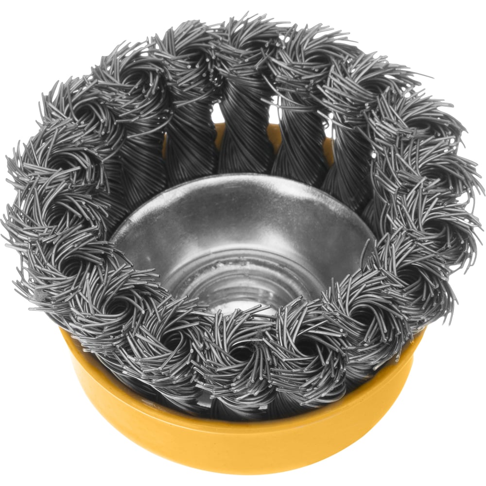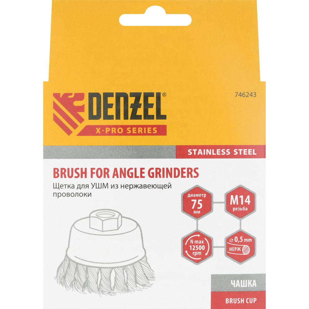 Щетка чашка (75 мм; М14; крученая нержавеющая проволока 0.5 мм) для УШМ Denzel 746243