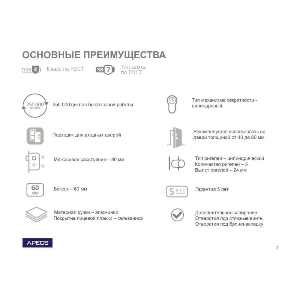 | Удаление ключевого отверстия (Backset) | 60 мм |