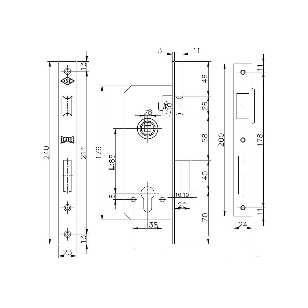 Врезной замок KALE KILIT цилиндровый для деревянных дверей 152R, 85BS35, 23BP, SP, Ros, STB 152R3500017