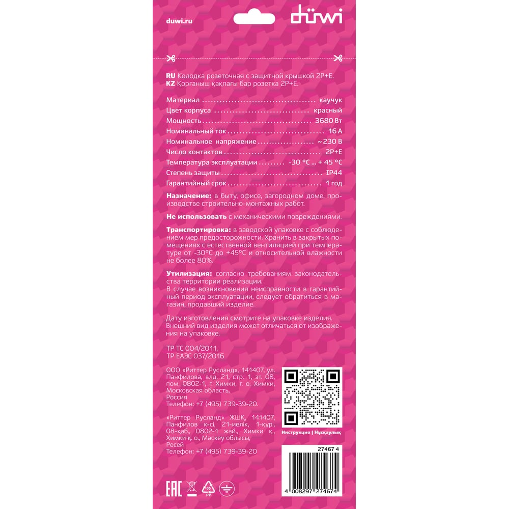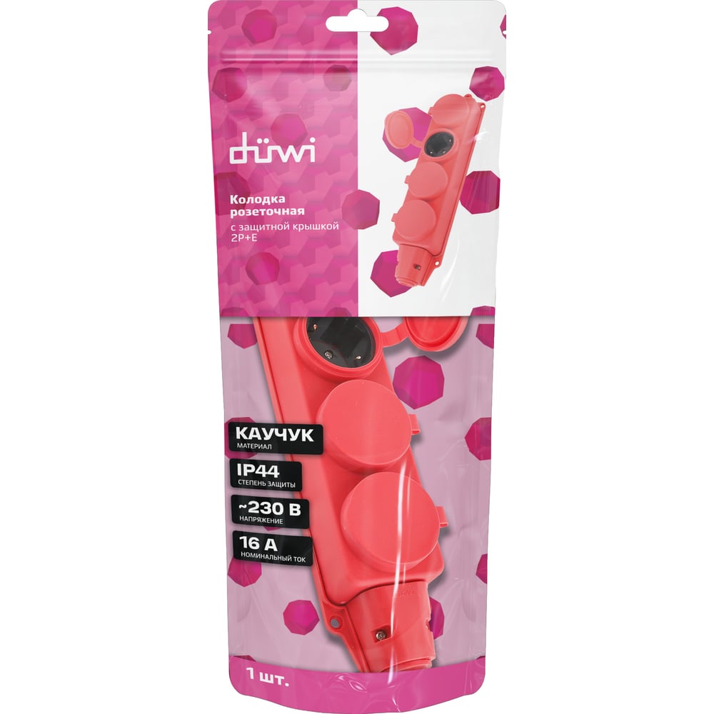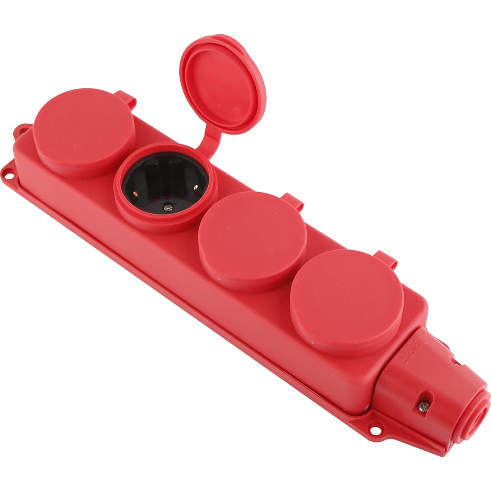 Каучуковая колодка duwi с крышкой с заземлением 4 гнезда 16A IP44 красная 27467 4