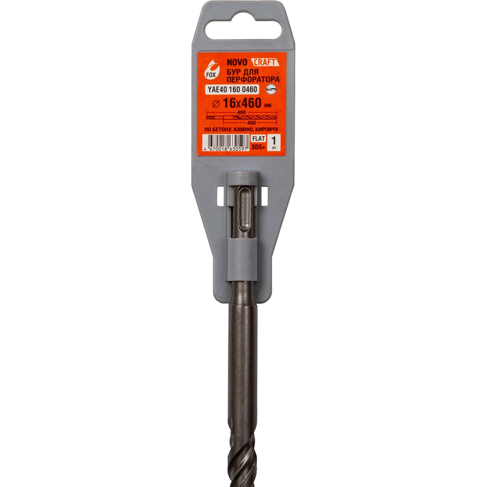 Бур по бетону Fox (16x460 мм; SDS-plus; сталь 40Х) для перфоратора Novocraft YAE401600460