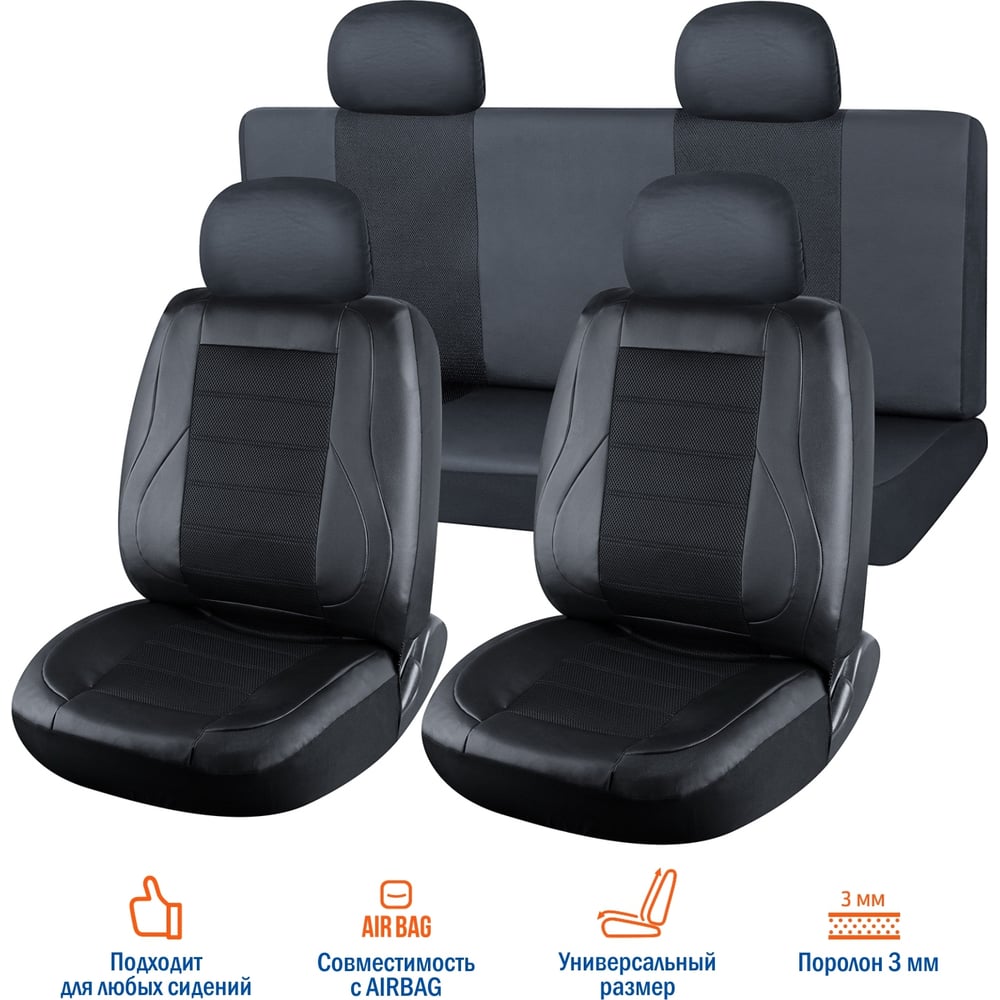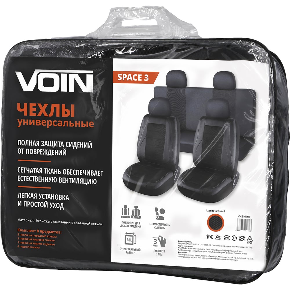 Универсальные чехлы VOIN Space 3 экокожа + сетка, размер M, 8 предметов, черный VN210101