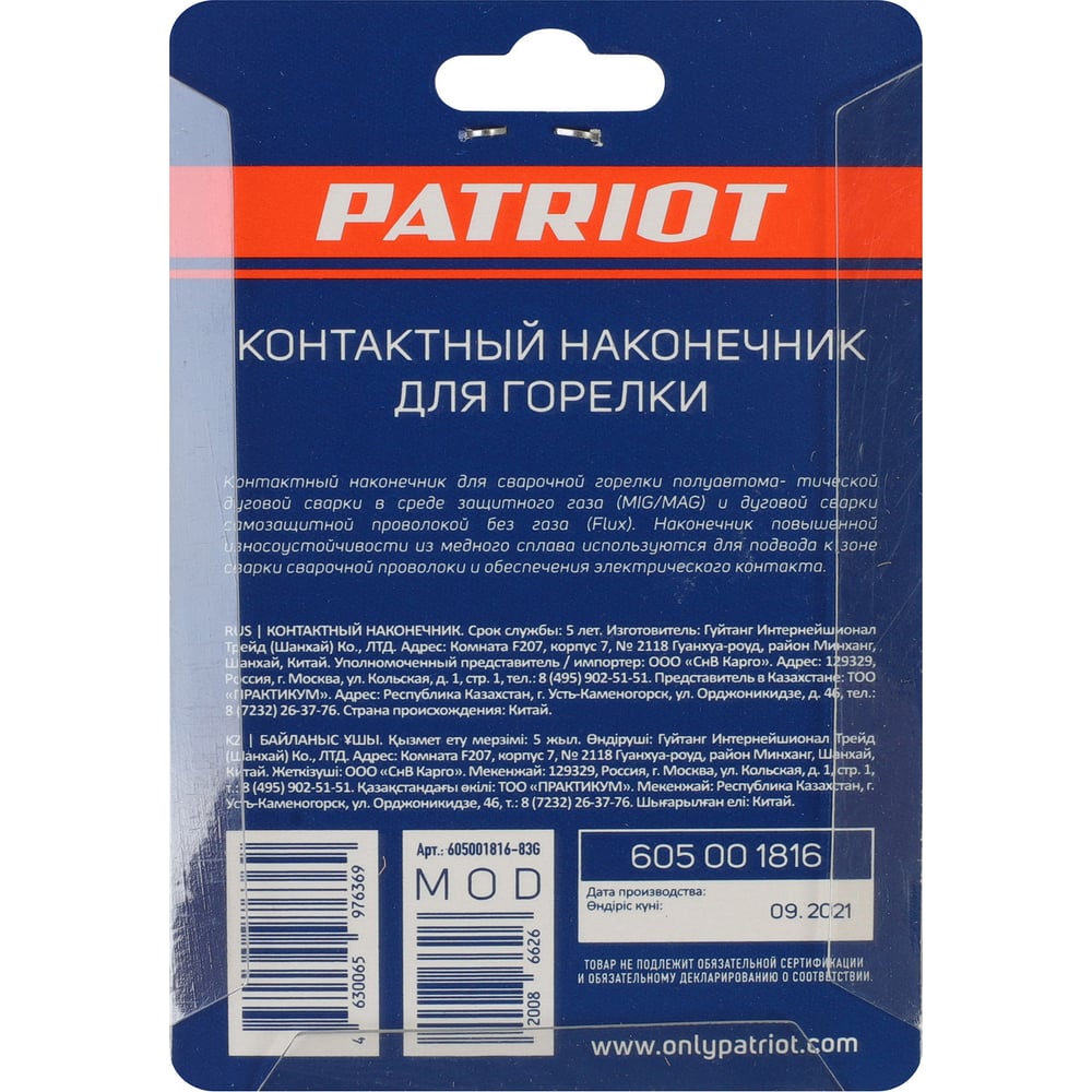 Контактный наконечник для горелки MIG Patriot 605001816