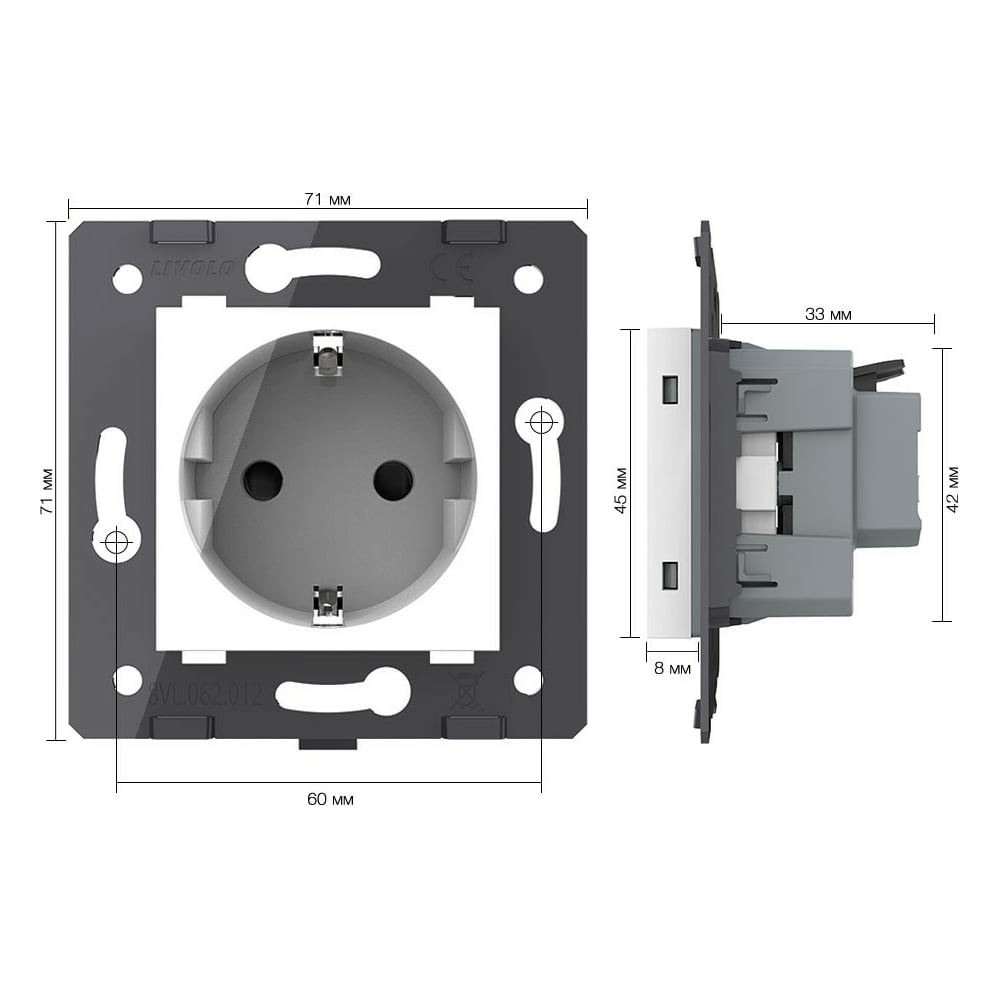 Электрическая розетка LIVOLO с заземлением защитными шторками 16A, зажимы, цвет белый (механизм) VL-FCTC16A-2WPS01