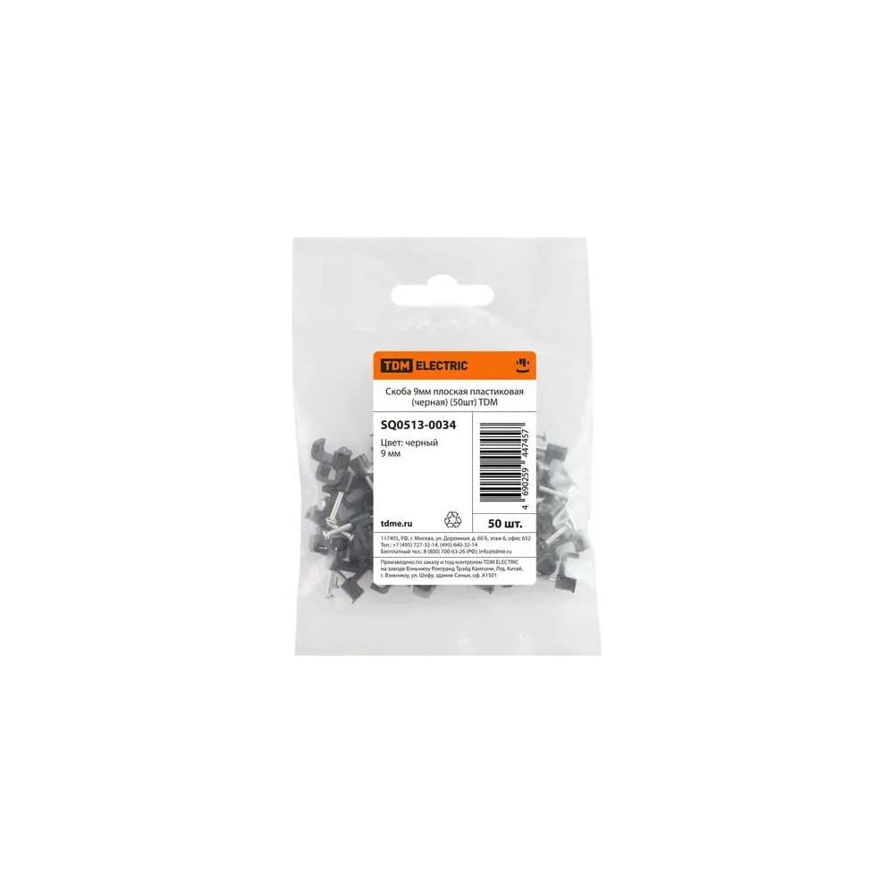 Скоба TDM ELECTRIC 9 мм, плоская, пластиковая, черная, 50 шт. SQ0513-0034