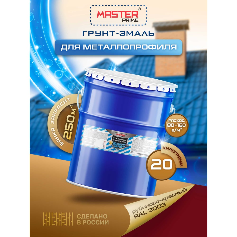 Грунт-эмаль для металлопрофиля MASTER PRIME RAL 3003 рубиново-красный, 20 кг 4300006963