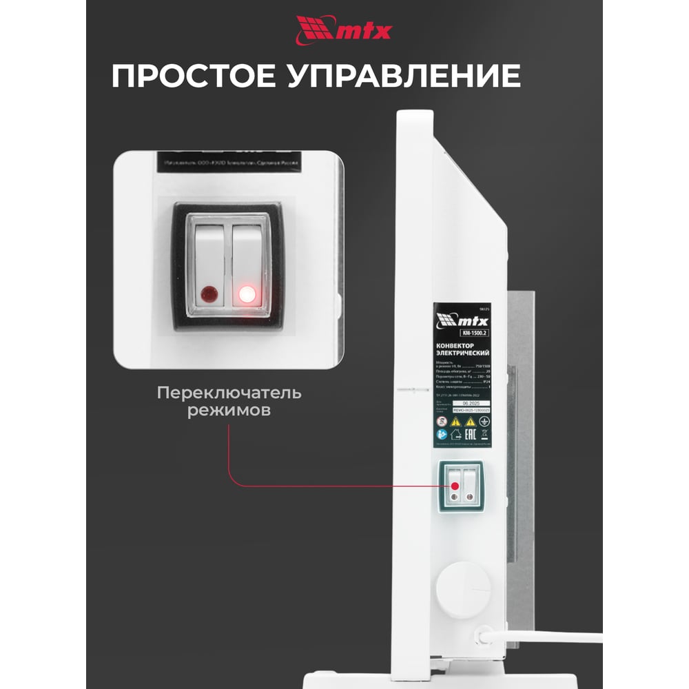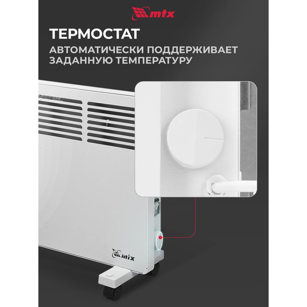 Электрический конвектор MTX км-1500.2, 230в, 1,5 квт, x-образный нагреватель, колеса, термостат 98125