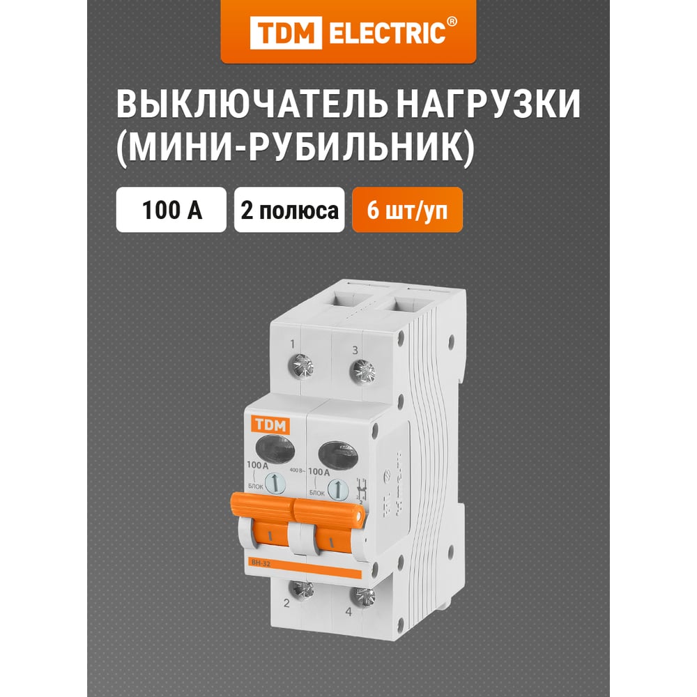 Выключатель нагрузки мини-рубильник TDM ELECTRIC ВН-32 2P 100A SQ0211-0019