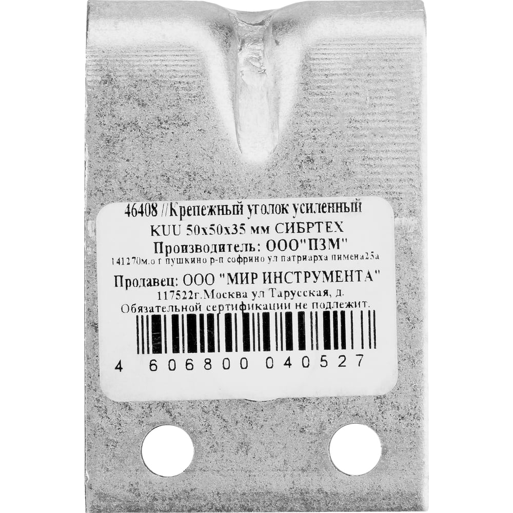 Усиленный крепежный уголок 2.0 мм KUU 50x50x35мм СИБРТЕХ 46408