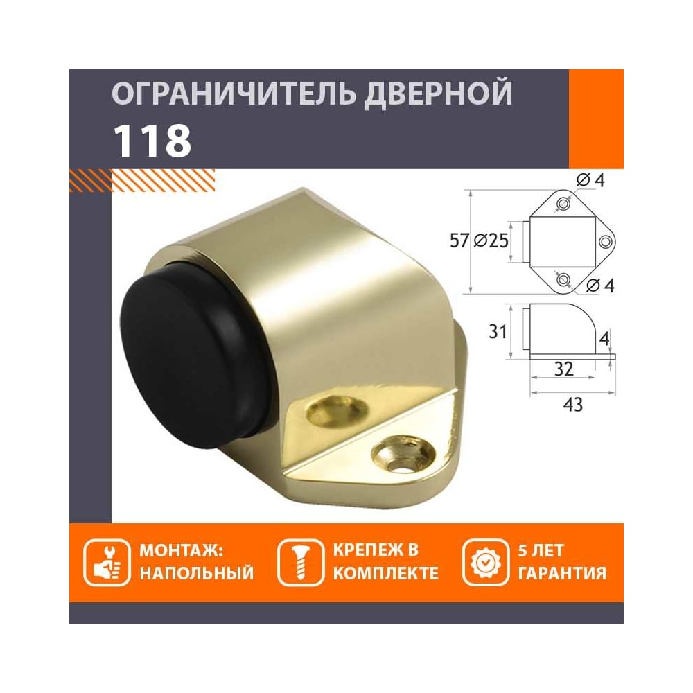 Дверной ограничитель НОРА-М 118 золото 16023