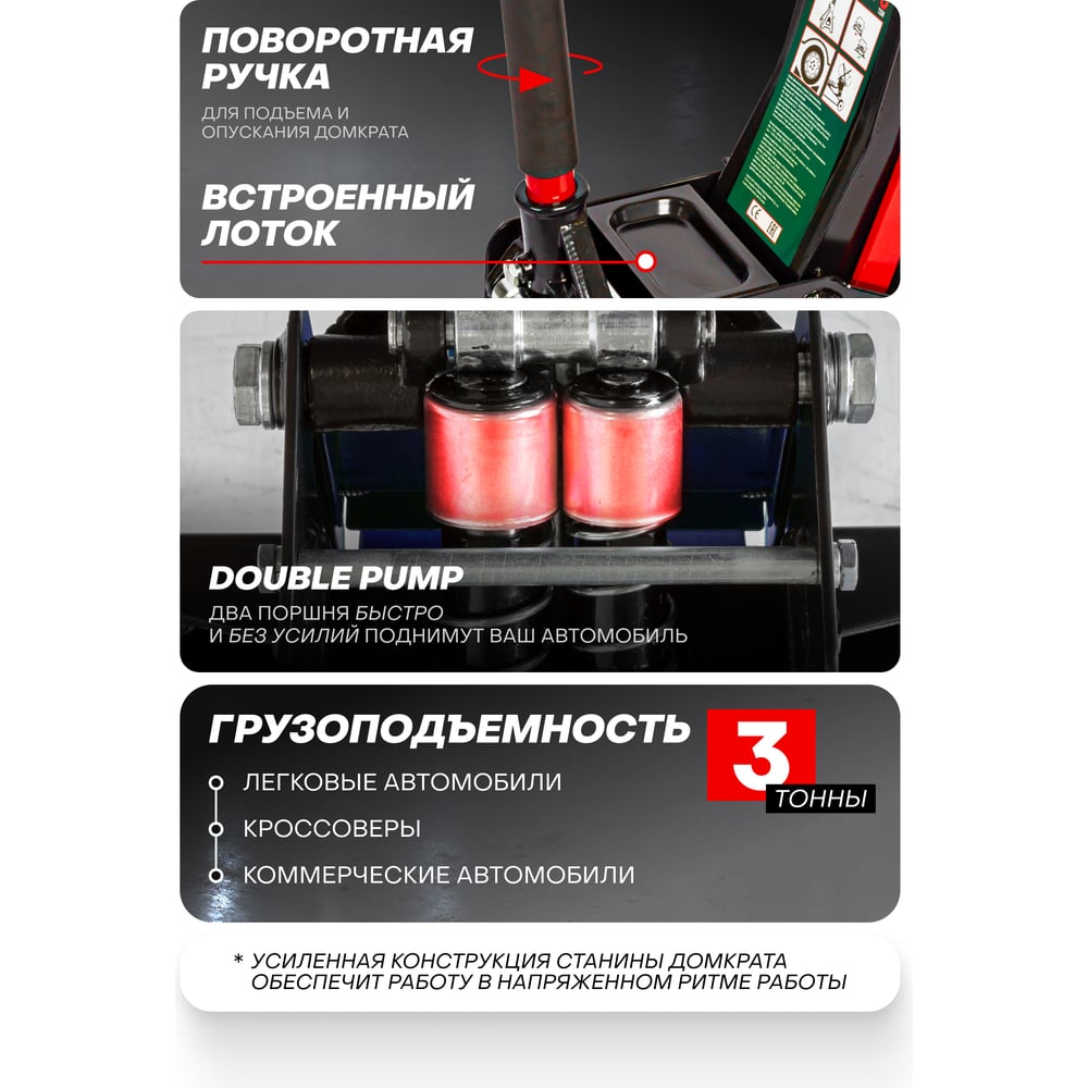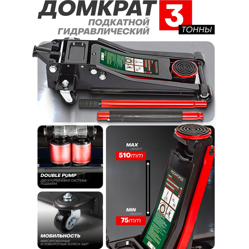 Гидравлический усиленный низкопрофильный домкрат Rockforce 3 т, h max-510 мм RF-T830018/DS//New/(47959)