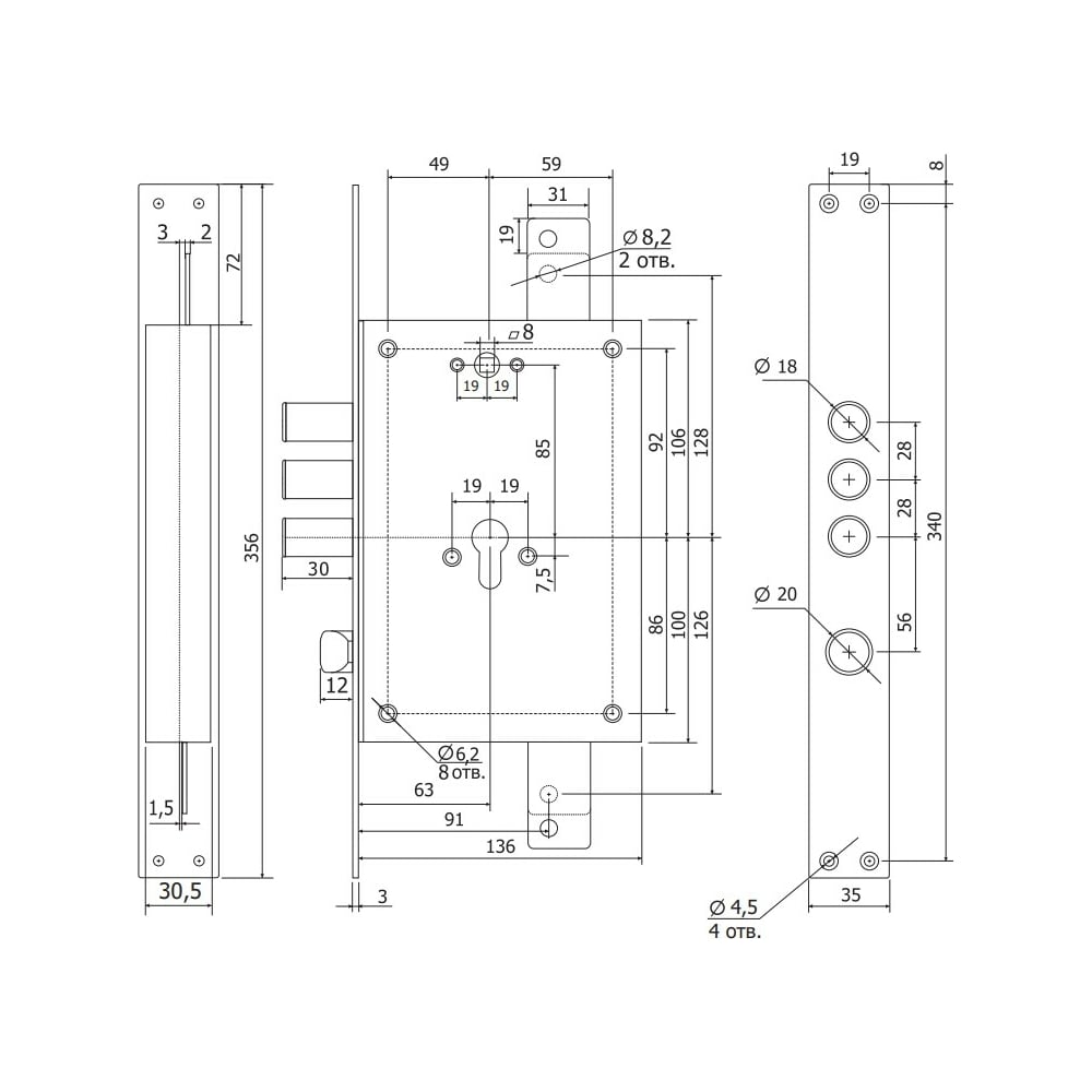 | Удаление ключевого отверстия (Backset) | 63.5 мм |