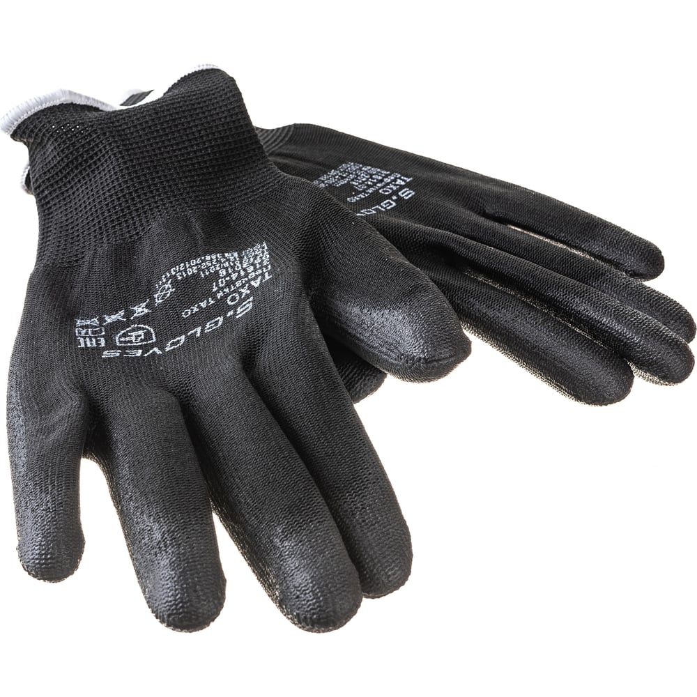 Нейлоновые перчатки с полиуретановым покрытием S. GLOVES TAXO черные, размер 07 31614-07