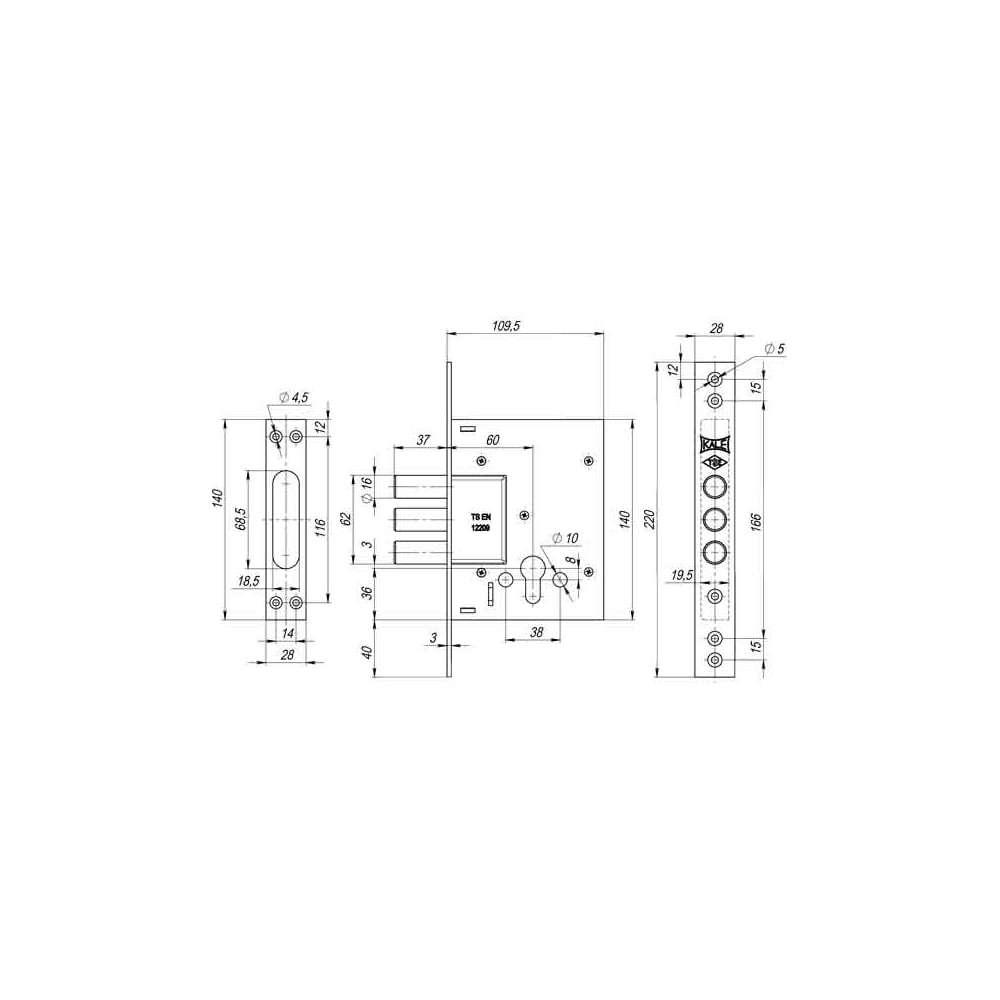 Корпус врезного цилиндрового замка KALE KILIT 257 w/b (тех. комплектация) 27261